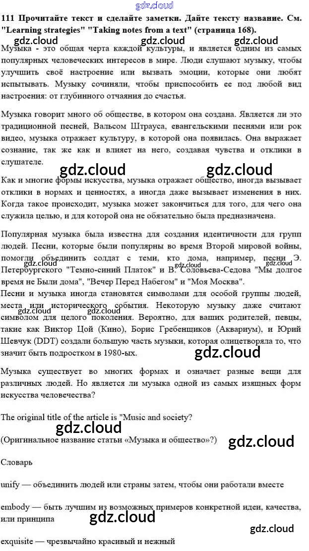 Ответ на задание 111 Учебник Английский язык за 10 (десятый) класс Биболетова, Денисенко, Трубанева Enjoy English 2016
