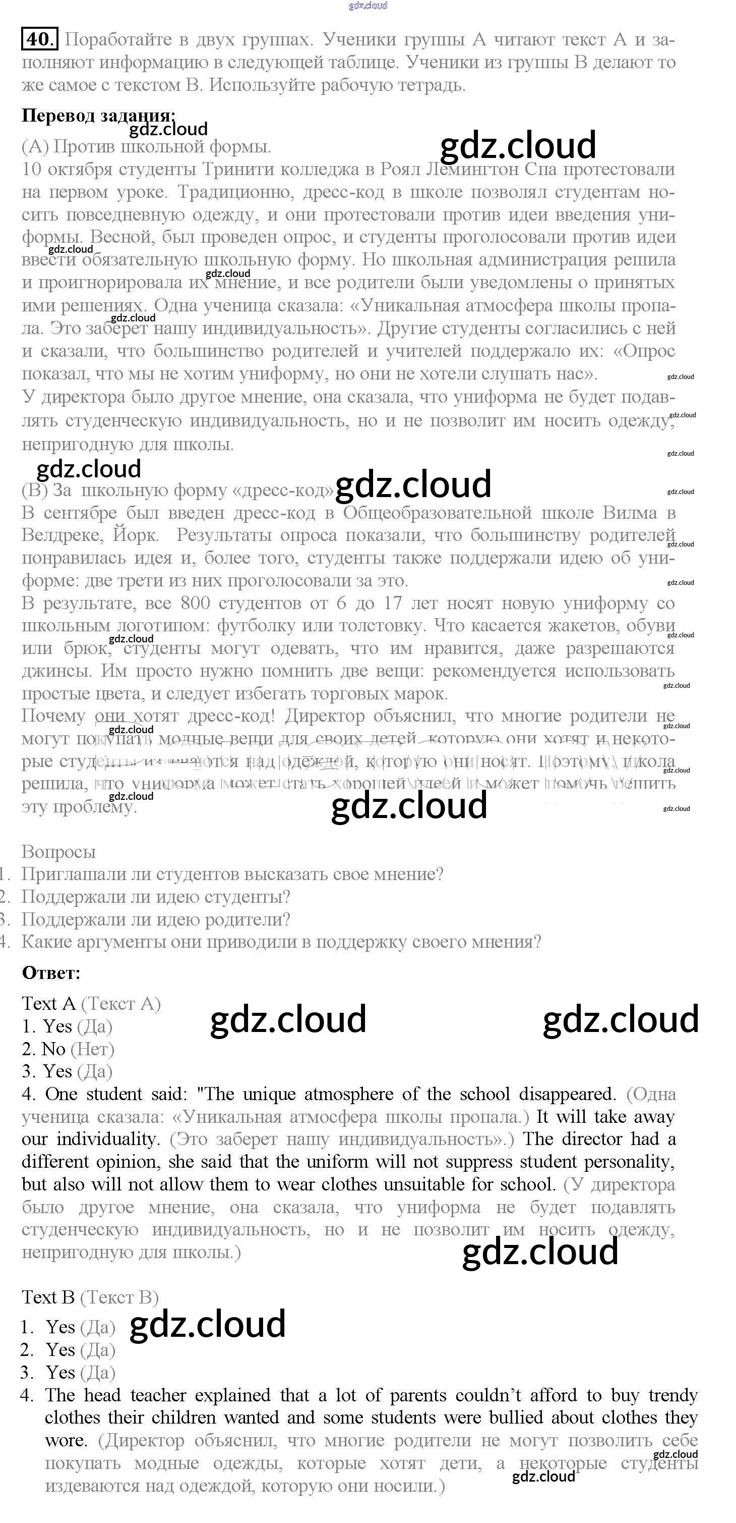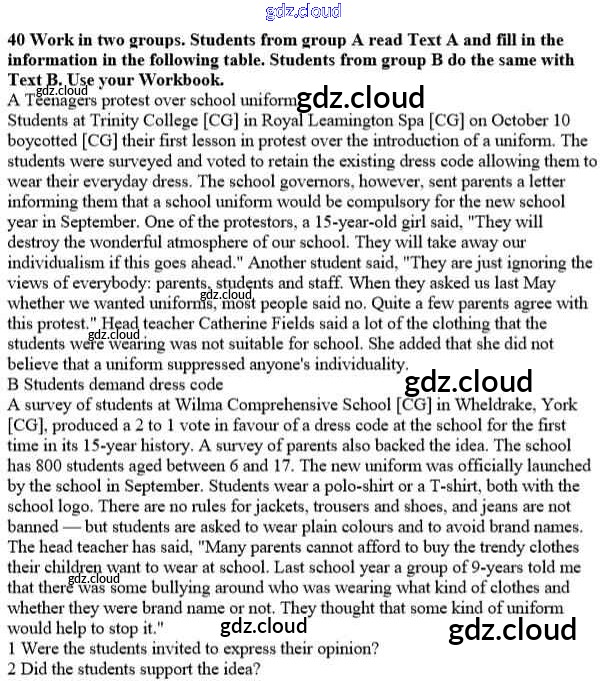Ответ на задание 40 Учебник Английский язык за 10 (десятый) класс Биболетова, Денисенко, Трубанева Enjoy English 2016