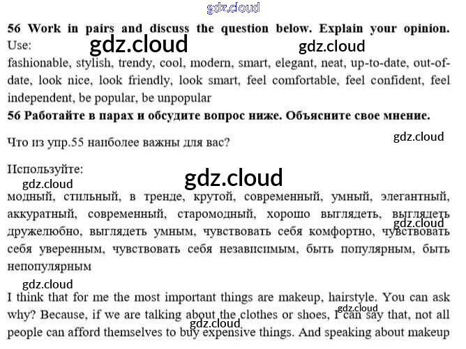 Ответ на задание 56 Учебник Английский язык за 10 (десятый) класс Биболетова, Денисенко, Трубанева Enjoy English 2016
