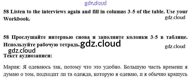 Ответ на задание 58 Учебник Английский язык за 10 (десятый) класс Биболетова, Денисенко, Трубанева Enjoy English 2016