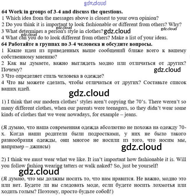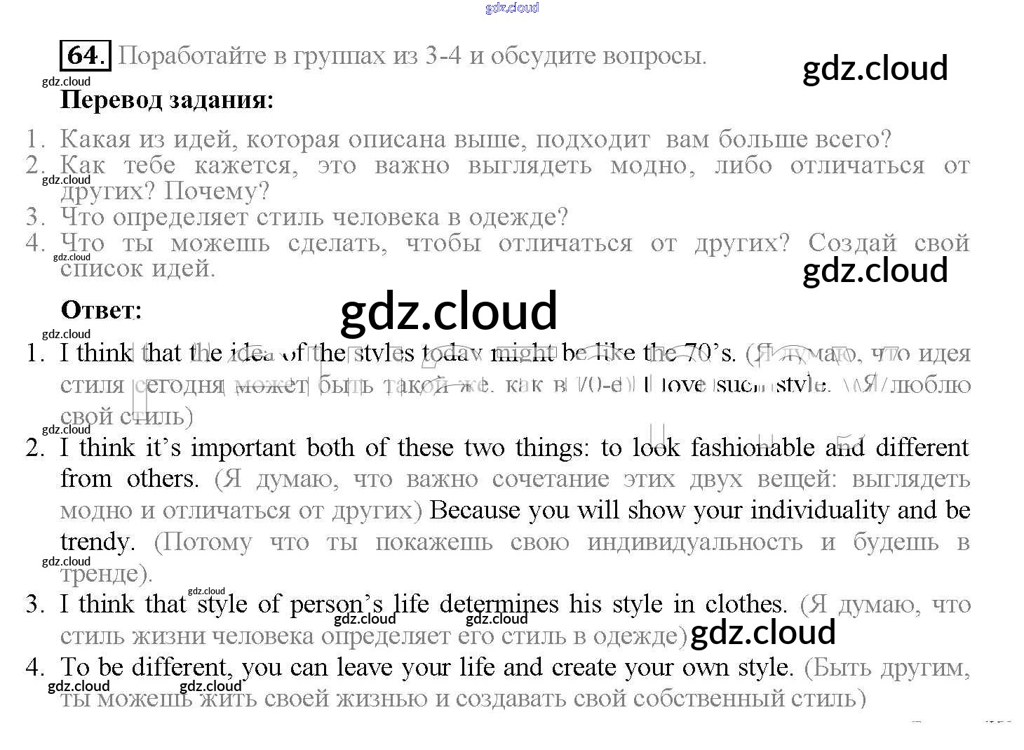 Ответ на задание 64 Учебник Английский язык за 10 (десятый) класс Биболетова, Денисенко, Трубанева Enjoy English 2016
