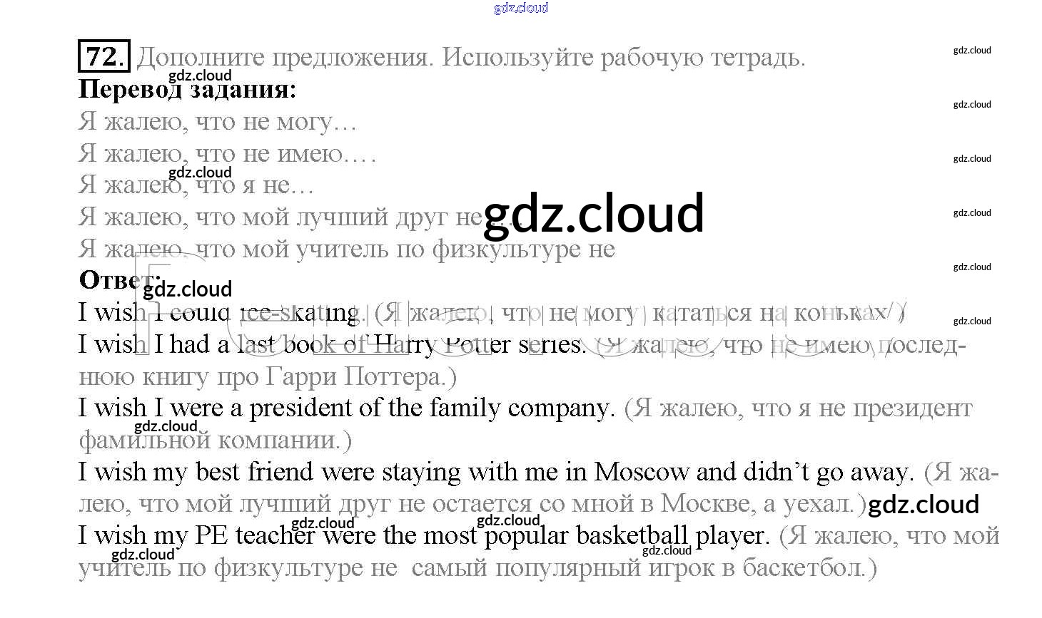 Ответ на задание 72 Учебник Английский язык за 10 (десятый) класс Биболетова, Денисенко, Трубанева Enjoy English 2016