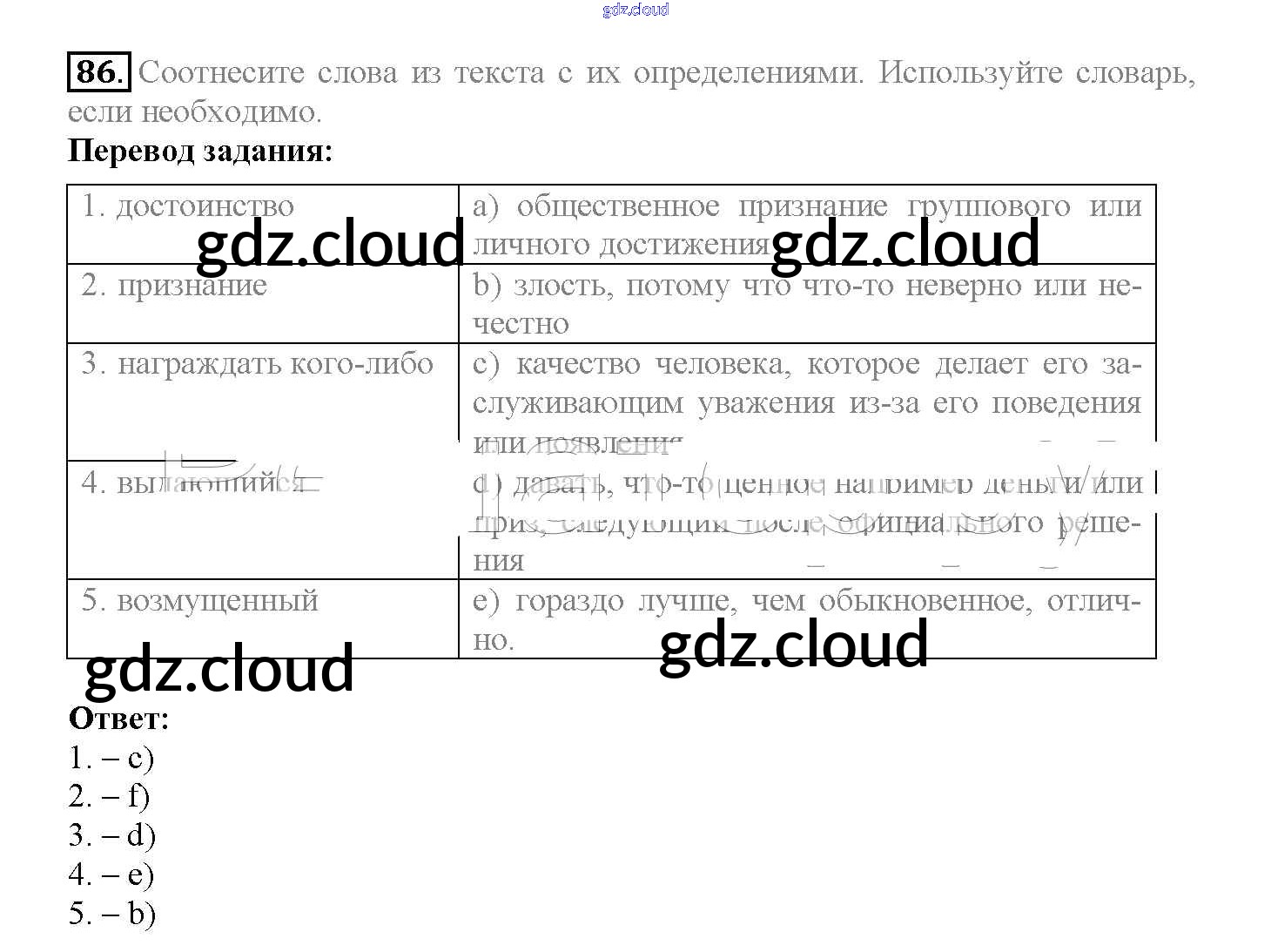 Ответ на задание 86 Учебник Английский язык за 10 (десятый) класс Биболетова, Денисенко, Трубанева Enjoy English 2016