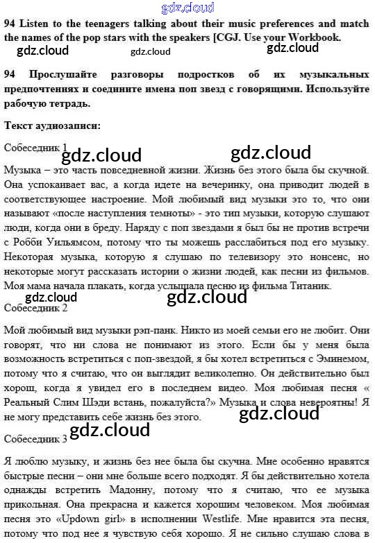 Ответ на задание 94 Учебник Английский язык за 10 (десятый) класс Биболетова, Денисенко, Трубанева Enjoy English 2016