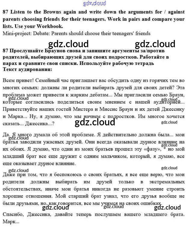 Ответ на задание 87 Учебник Английский язык за 10 (десятый) класс Биболетова, Денисенко, Трубанева Enjoy English 2016