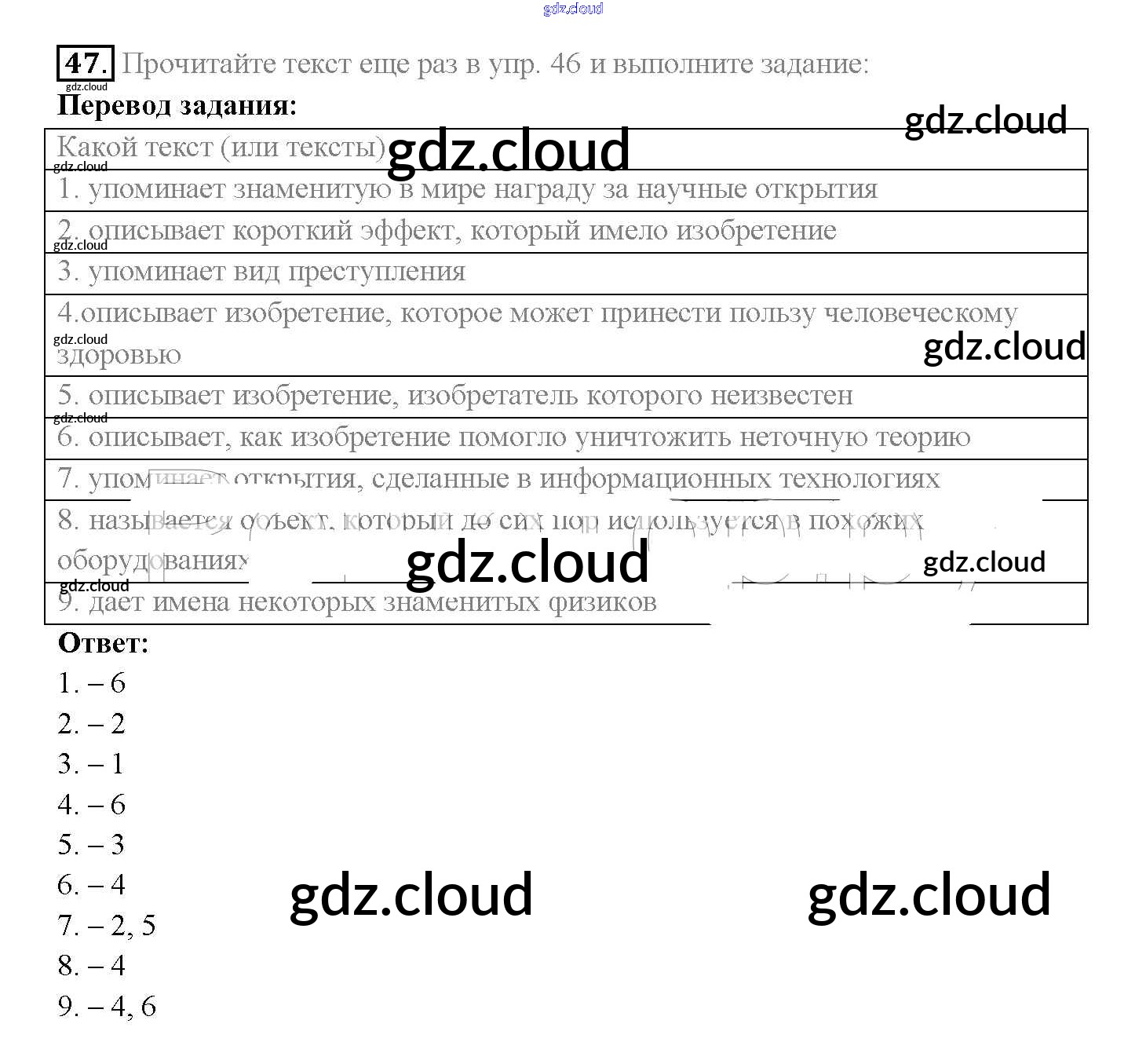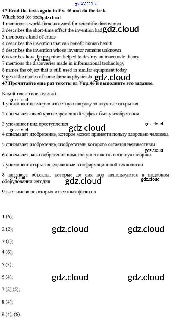 Ответ на задание 47 Учебник Английский язык за 10 (десятый) класс Биболетова, Денисенко, Трубанева Enjoy English 2016