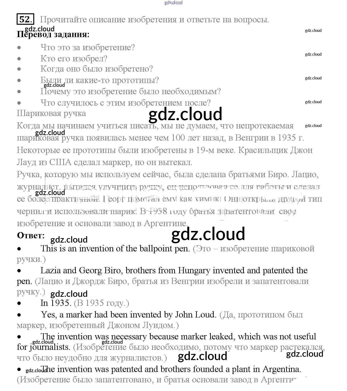 Ответ на задание 52 Учебник Английский язык за 10 (десятый) класс Биболетова, Денисенко, Трубанева Enjoy English 2016