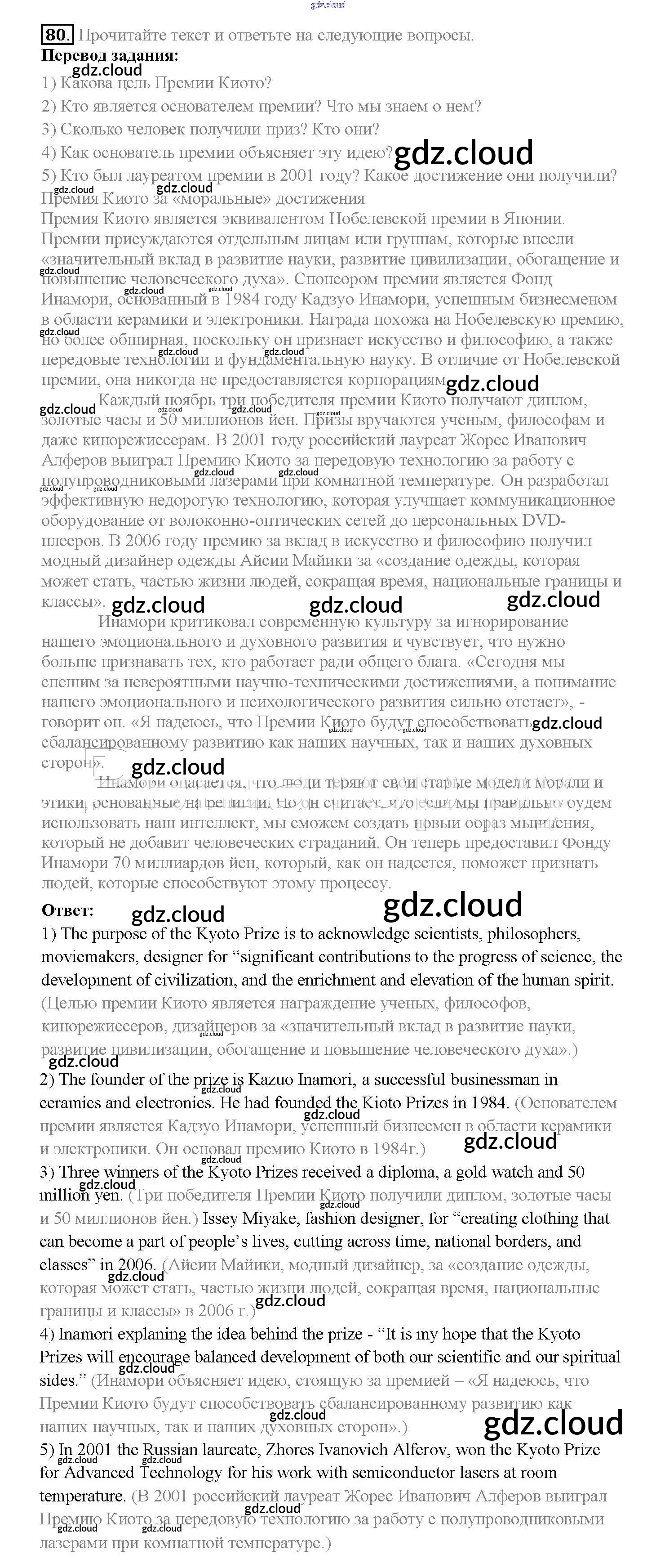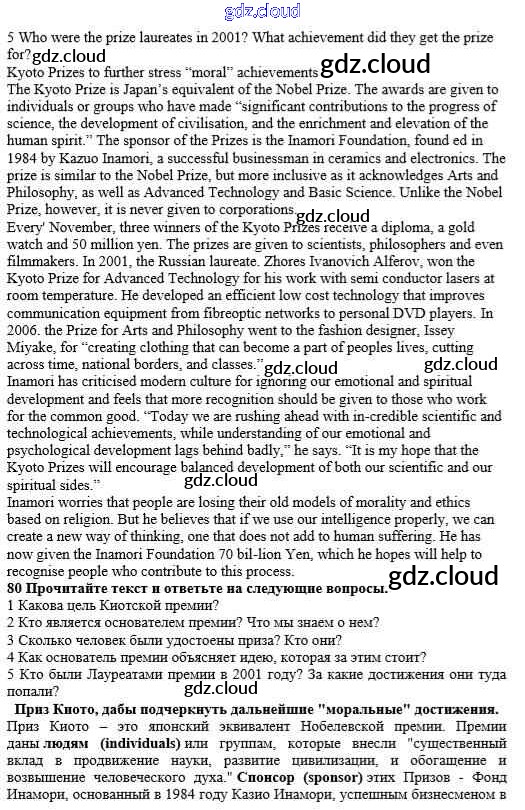 Ответ на задание 80 Учебник Английский язык за 10 (десятый) класс Биболетова, Денисенко, Трубанева Enjoy English 2016