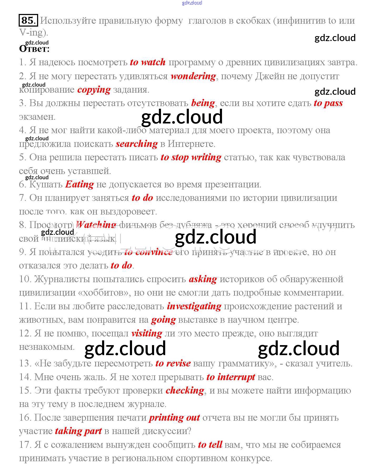 Ответ на задание 85 Учебник Английский язык за 10 (десятый) класс Биболетова, Денисенко, Трубанева Enjoy English 2016