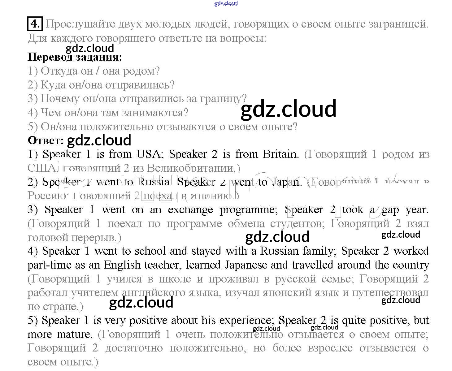 Ответ на задание 4 Учебник Английский язык за 10 (десятый) класс Биболетова, Денисенко, Трубанева Enjoy English 2016