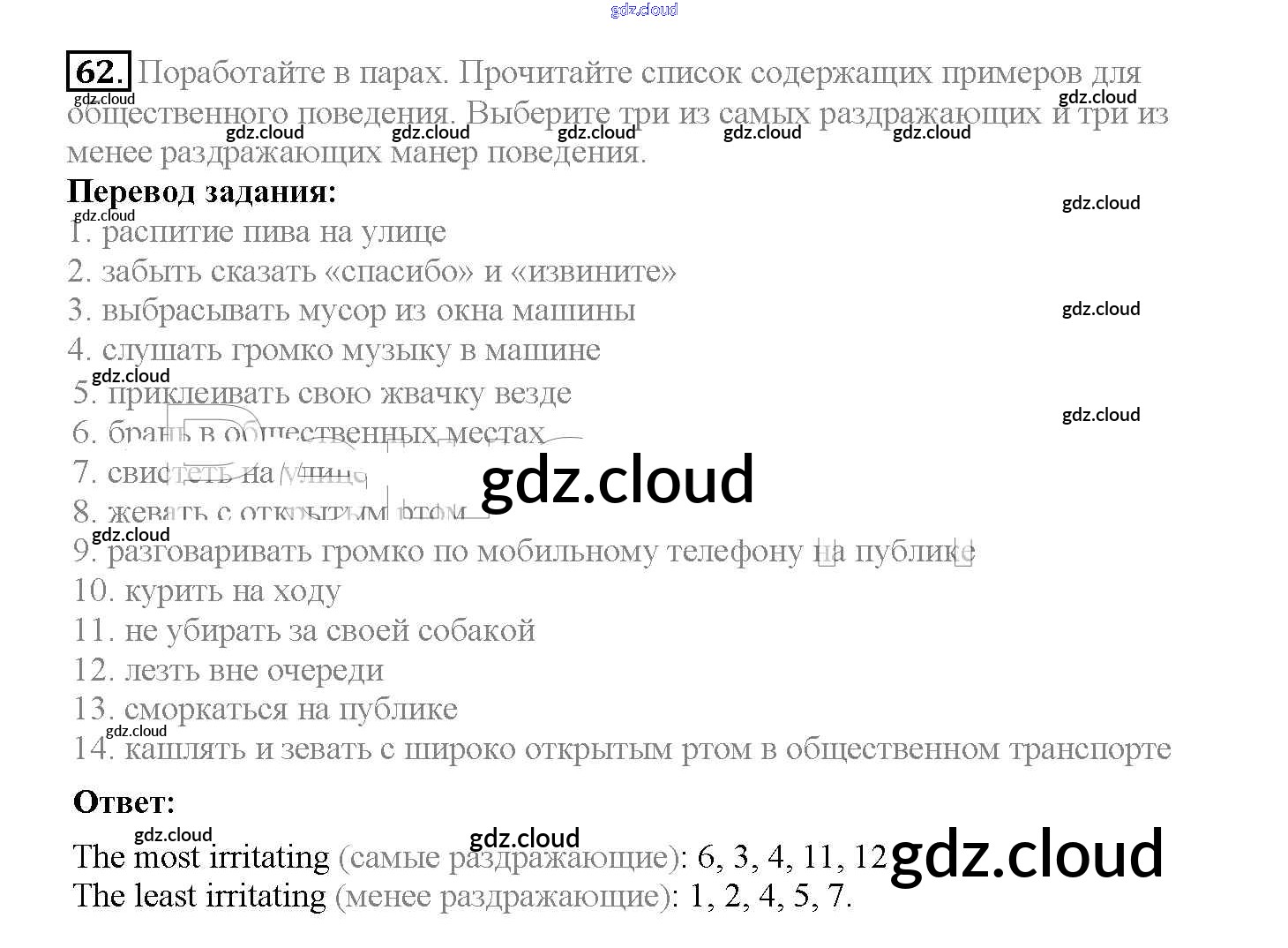 Ответ на задание 62 Учебник Английский язык за 10 (десятый) класс Биболетова, Денисенко, Трубанева Enjoy English 2016