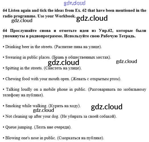 Ответ на задание 64 Учебник Английский язык за 10 (десятый) класс Биболетова, Денисенко, Трубанева Enjoy English 2016