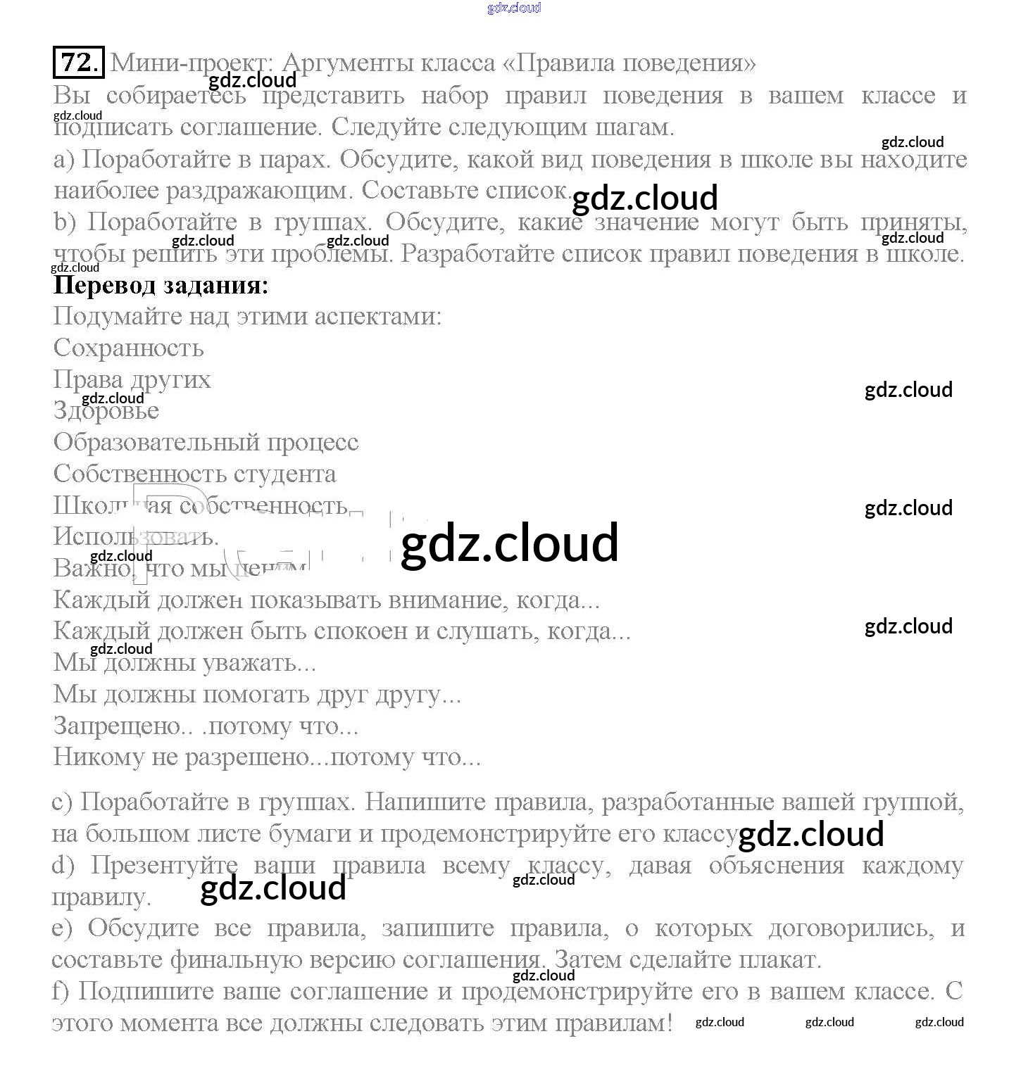 Ответ на задание 72 Учебник Английский язык за 10 (десятый) класс Биболетова, Денисенко, Трубанева Enjoy English 2016