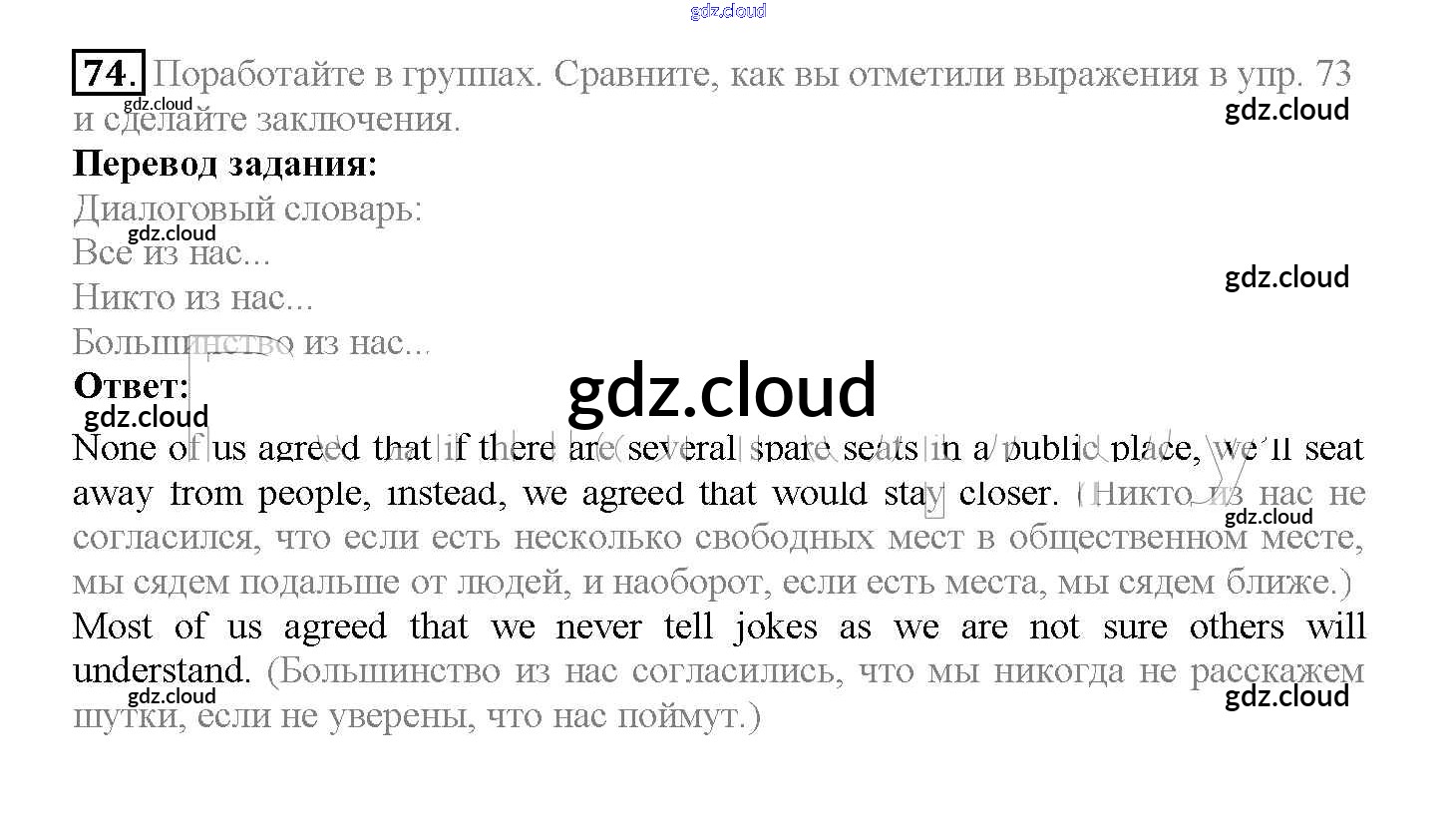 Ответ на задание 74 Учебник Английский язык за 10 (десятый) класс Биболетова, Денисенко, Трубанева Enjoy English 2016