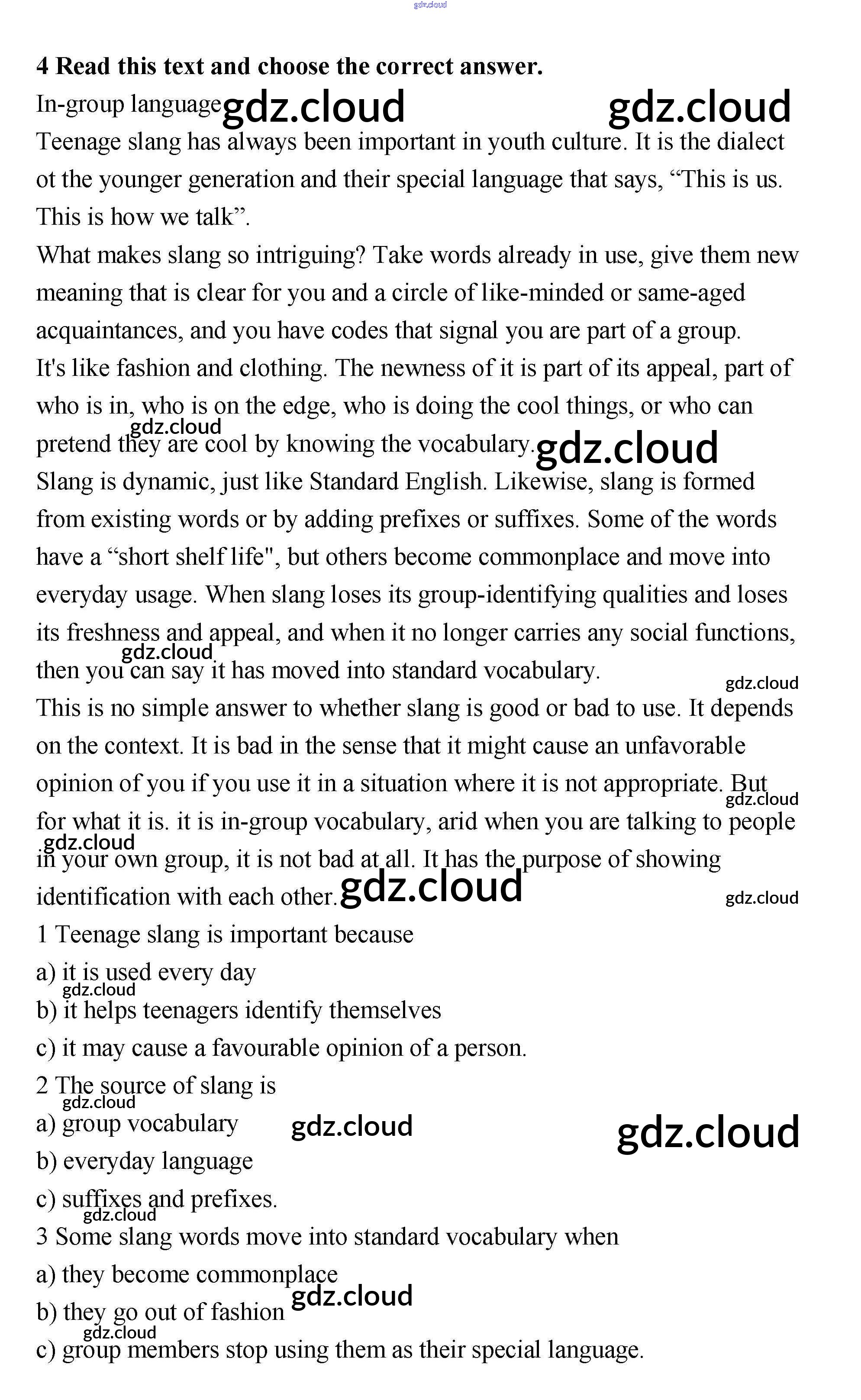 Ответ на задание 4 Рабочая тетрадь Английский язык за 10 (десятый) класс Гроза, Дворецкая, Казырбаева, Клименко New Millennium 2013