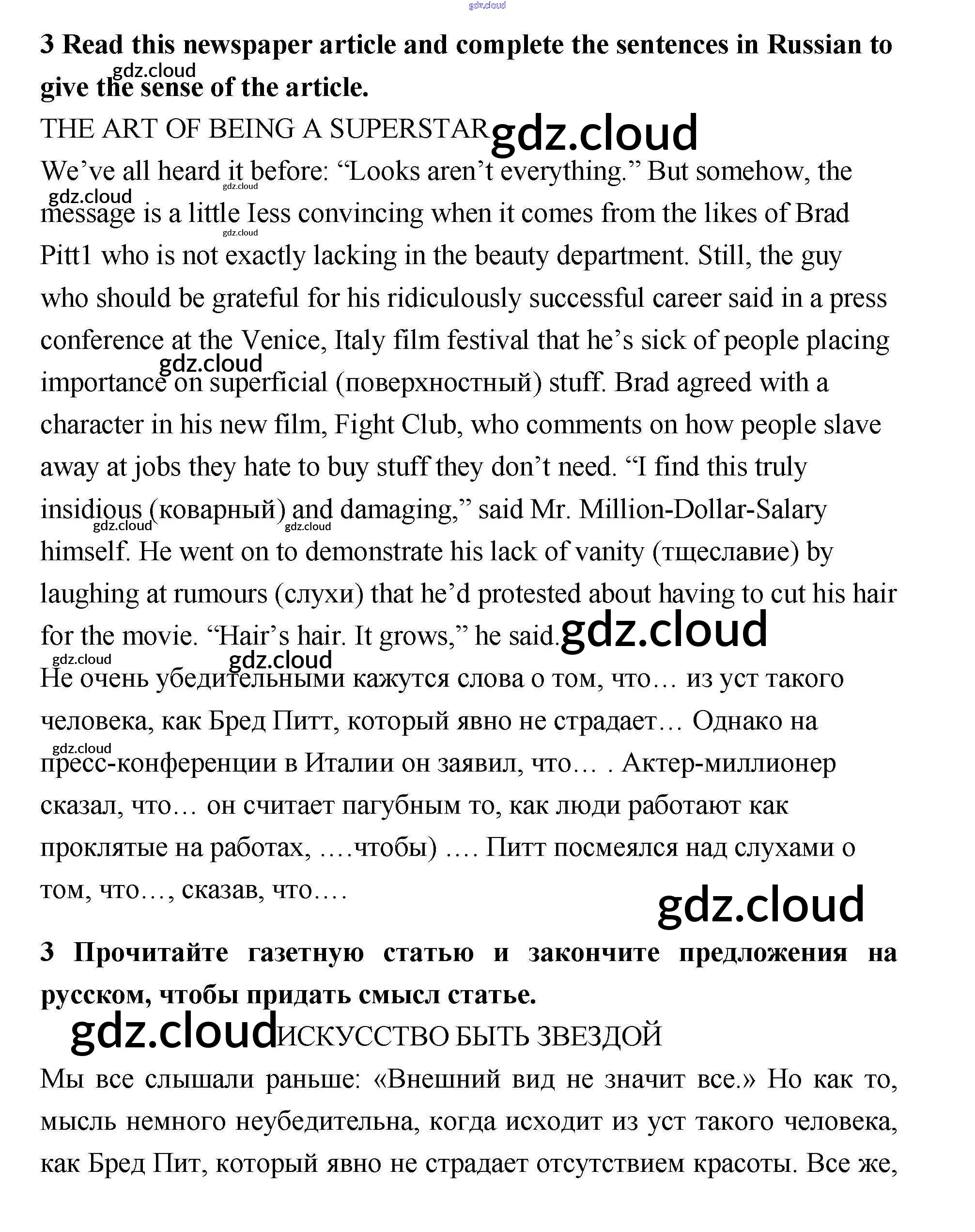 Ответ на задание 3 Рабочая тетрадь Английский язык за 10 (десятый) класс Гроза, Дворецкая, Казырбаева, Клименко New Millennium 2013