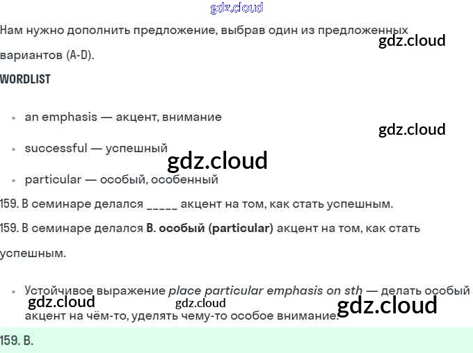 Ответ на задание 159 Рабочая тетрадь Английский язык за 10 (десятый) класс Баранова, Дули, Копылова, Мильруд, Эванс Starlight Углубленный уровень 2021