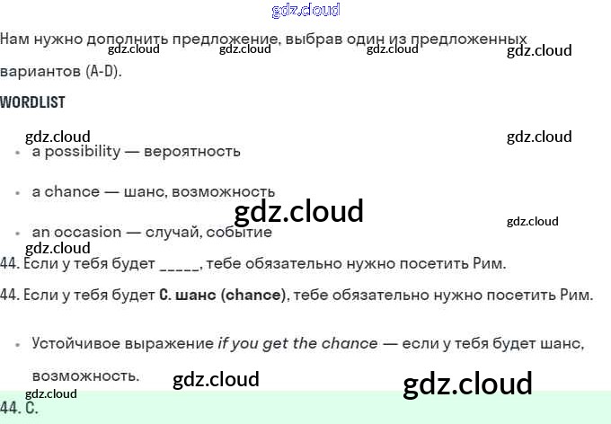 Ответ на задание 44 Рабочая тетрадь Английский язык за 10 (десятый) класс Баранова, Дули, Копылова, Мильруд, Эванс Starlight Углубленный уровень 2021