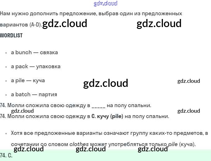 Ответ на задание 74 Рабочая тетрадь Английский язык за 10 (десятый) класс Баранова, Дули, Копылова, Мильруд, Эванс Starlight Углубленный уровень 2021