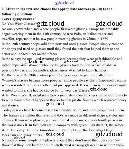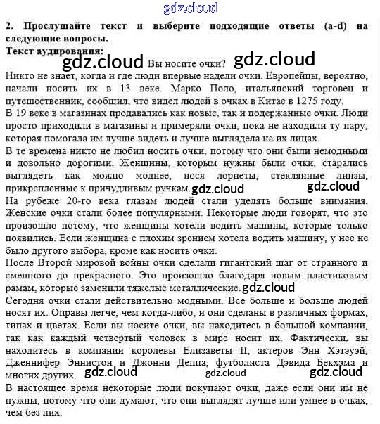 Ответ на задание 2 Рабочая тетрадь Английский язык за 10 (десятый) класс Афанасьева, Михеева, Баранова Rainbow 2016