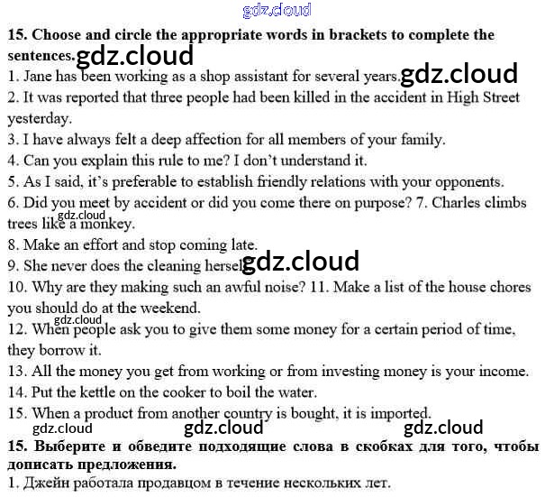 Ответ на задание 15 Рабочая тетрадь Английский язык за 10 (десятый) класс Афанасьева, Михеева, Баранова Rainbow 2016