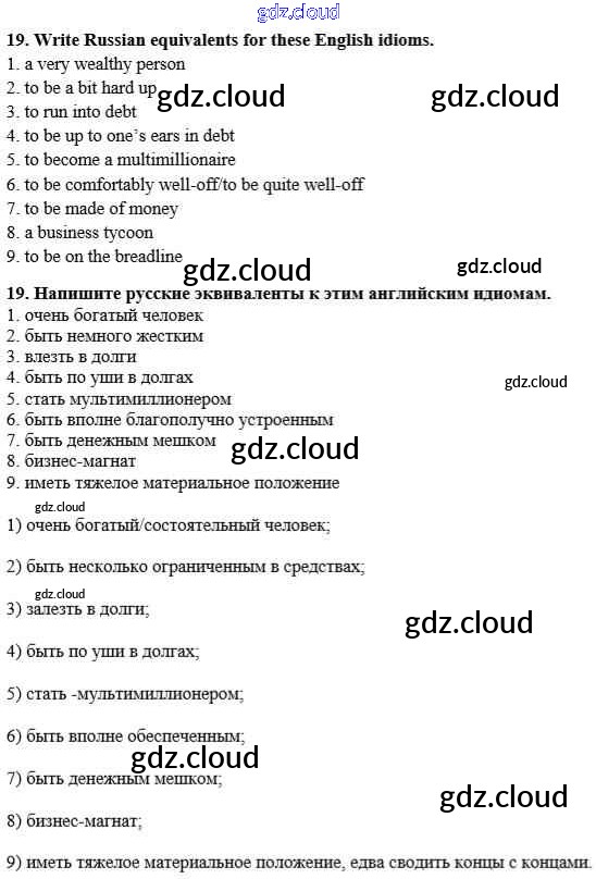 Ответ на задание 19 Рабочая тетрадь Английский язык за 10 (десятый) класс Афанасьева, Михеева, Баранова Rainbow 2016