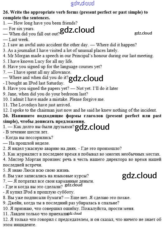 Ответ на задание 26 Рабочая тетрадь Английский язык за 10 (десятый) класс Афанасьева, Михеева, Баранова Rainbow 2016