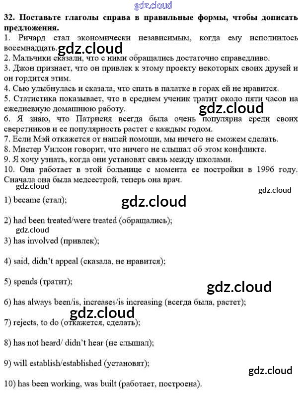 Ответ на задание 32 Рабочая тетрадь Английский язык за 10 (десятый) класс Афанасьева, Михеева, Баранова Rainbow 2016