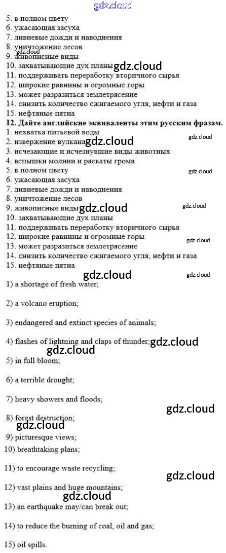 Ответ на задание 12 Рабочая тетрадь Английский язык за 10 (десятый) класс Афанасьева, Михеева, Баранова Rainbow 2016
