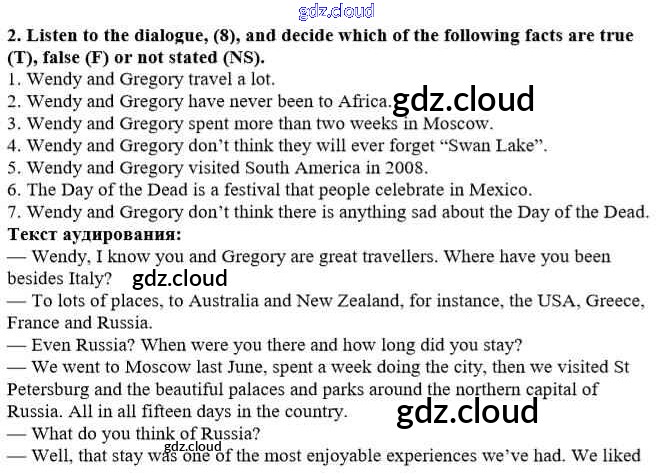 Ответ на задание 2 Рабочая тетрадь Английский язык за 10 (десятый) класс Афанасьева, Михеева, Баранова Rainbow 2016
