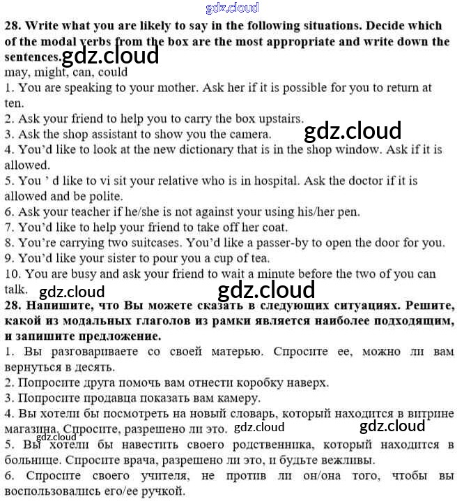 Ответ на задание 28 Рабочая тетрадь Английский язык за 10 (десятый) класс Афанасьева, Михеева, Баранова Rainbow 2016