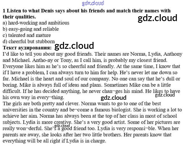 Ответ на задание 1 Учебник Английский язык за 10 (десятый) класс Афанасьева, Михеева, Баранова Rainbow Базовый уровень 2016