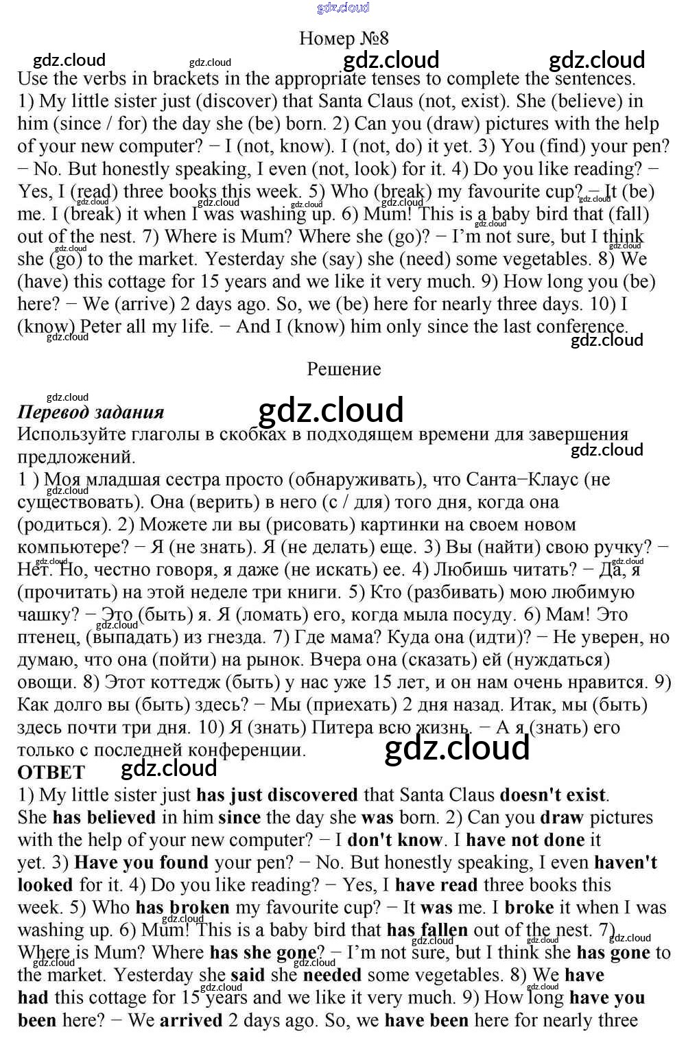 Ответ на задание 8 Учебник Английский язык за 10 (десятый) класс Афанасьева, Михеева, Баранова Rainbow Базовый уровень 2016