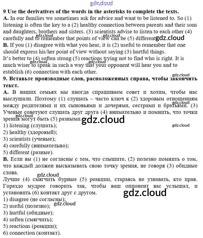 Ответ на задание 9 Учебник Английский язык за 10 (десятый) класс Афанасьева, Михеева, Баранова Rainbow Базовый уровень 2016
