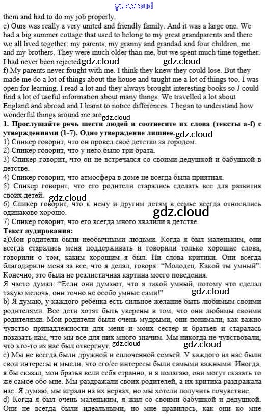 Ответ на задание 1 Учебник Английский язык за 10 (десятый) класс Афанасьева, Михеева, Баранова Rainbow Базовый уровень 2016