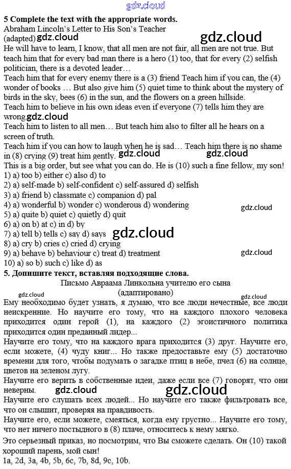 Ответ на задание 5 Учебник Английский язык за 10 (десятый) класс Афанасьева, Михеева, Баранова Rainbow Базовый уровень 2016