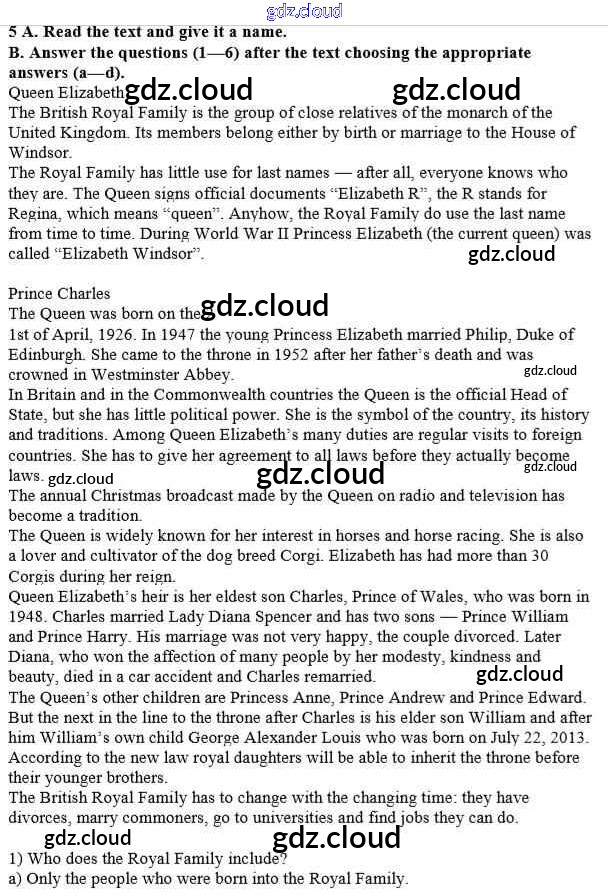 Ответ на задание 5 Учебник Английский язык за 10 (десятый) класс Афанасьева, Михеева, Баранова Rainbow Базовый уровень 2016