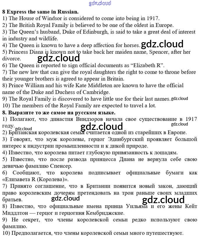 Ответ на задание 8 Учебник Английский язык за 10 (десятый) класс Афанасьева, Михеева, Баранова Rainbow Базовый уровень 2016