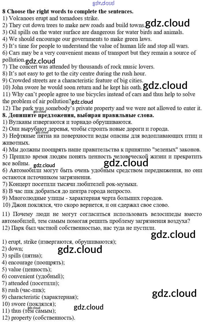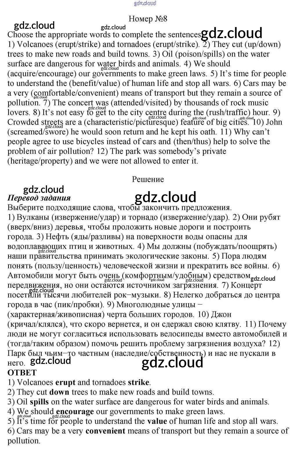 Ответ на задание 8 Учебник Английский язык за 10 (десятый) класс Афанасьева, Михеева, Баранова Rainbow Базовый уровень 2016