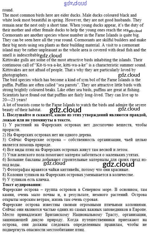 Ответ на задание 1 Учебник Английский язык за 10 (десятый) класс Афанасьева, Михеева, Баранова Rainbow Базовый уровень 2016