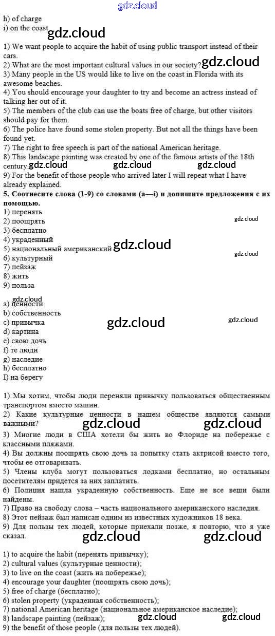 Ответ на задание 5 Учебник Английский язык за 10 (десятый) класс Афанасьева, Михеева, Баранова Rainbow Базовый уровень 2016