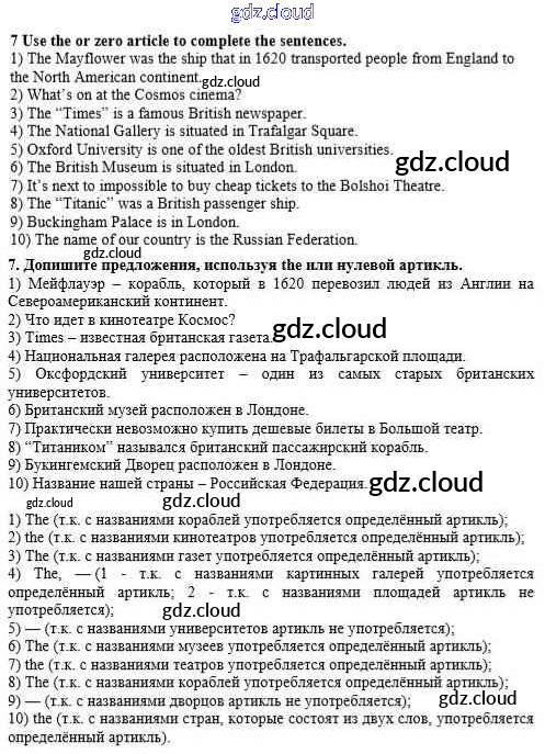 Ответ на задание 7 Учебник Английский язык за 10 (десятый) класс Афанасьева, Михеева, Баранова Rainbow Базовый уровень 2016