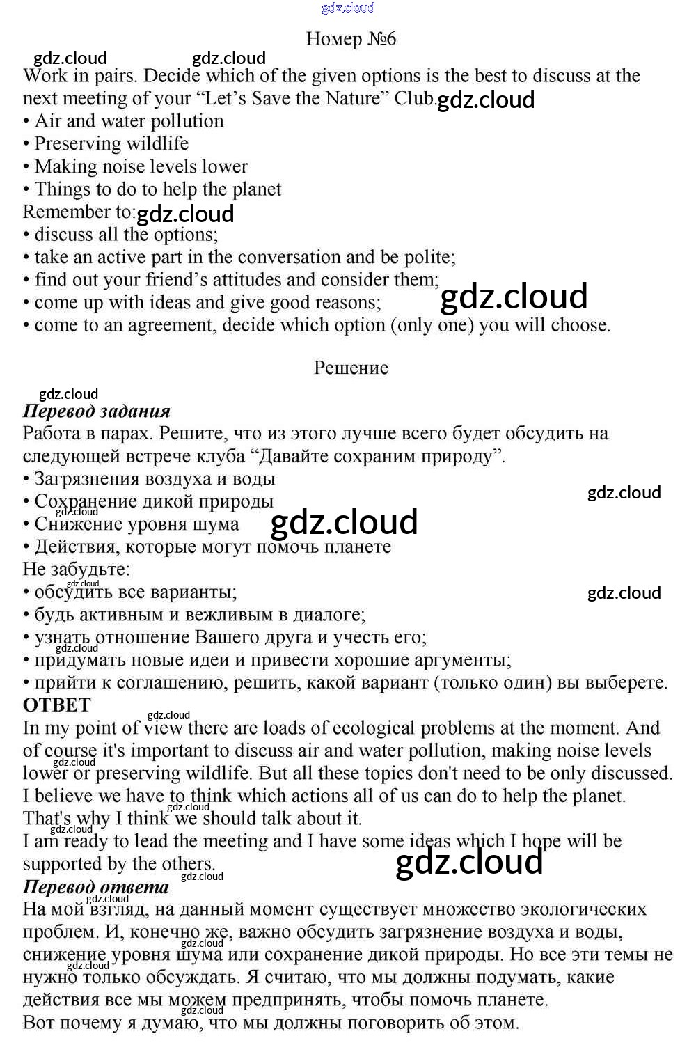 Step 6 Ответы к Unit 3. In Harmony with Nature по Английскому языку 10 класс Учебник Афанасьева Rainbow Базовый уровень Дрофа
