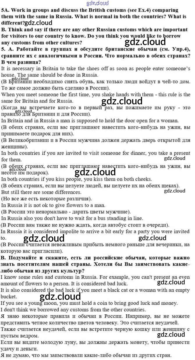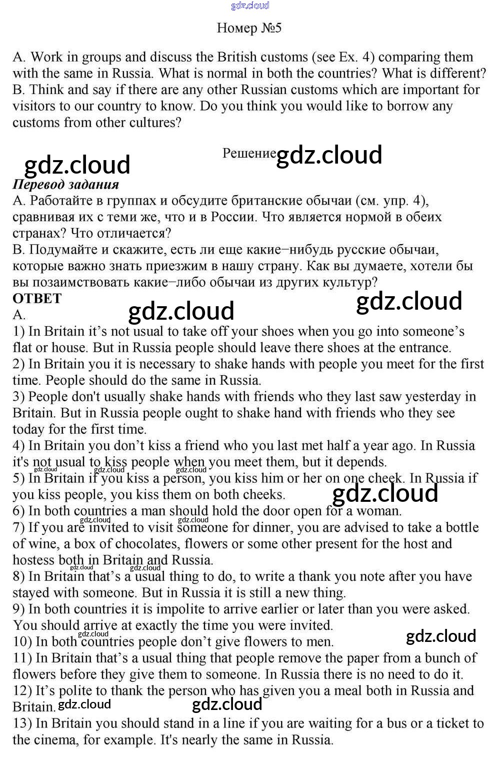 Ответ на задание 5 Учебник Английский язык за 10 (десятый) класс Афанасьева, Михеева, Баранова Rainbow Базовый уровень 2016