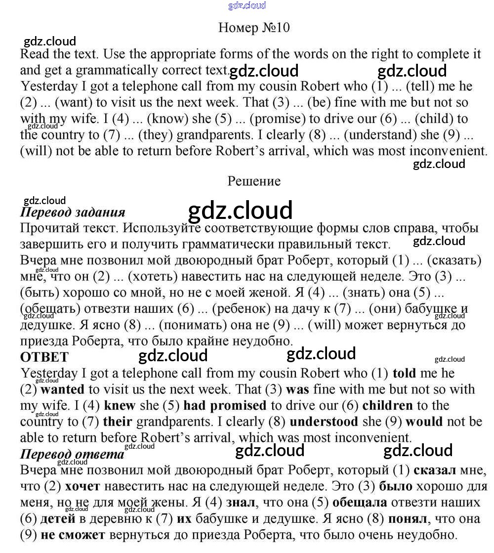 Ответ на задание 10 Учебник Английский язык за 10 (десятый) класс Афанасьева, Михеева, Баранова Rainbow Базовый уровень 2016