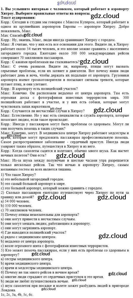 Ответ на задание 1 Учебник Английский язык за 10 (десятый) класс Афанасьева, Михеева, Баранова Rainbow Базовый уровень 2016