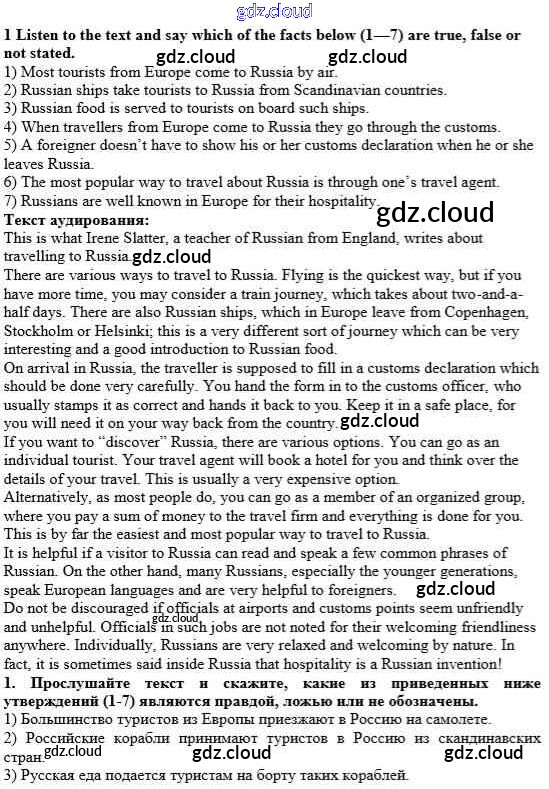 Ответ на задание 1 Учебник Английский язык за 10 (десятый) класс Афанасьева, Михеева, Баранова Rainbow Базовый уровень 2016