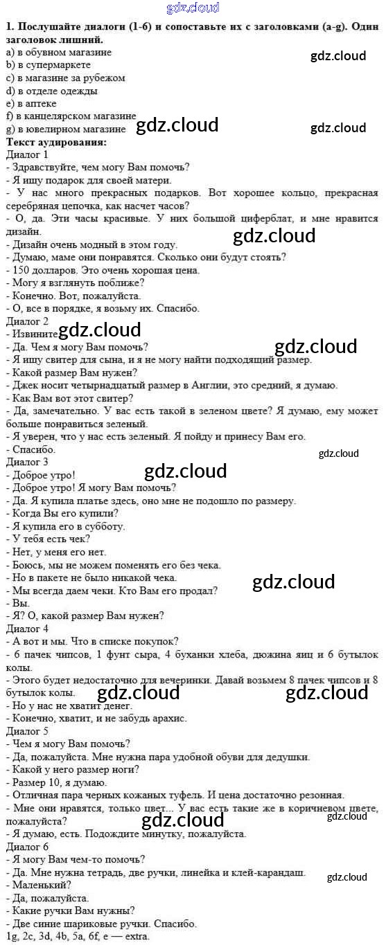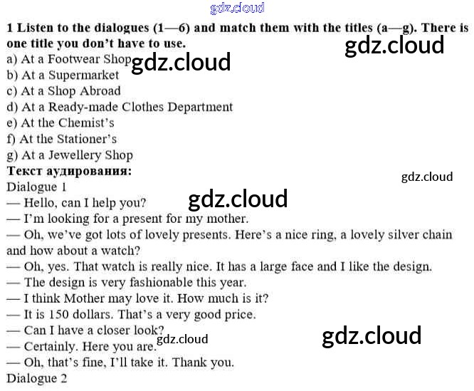 Ответ на задание 1 Учебник Английский язык за 10 (десятый) класс Афанасьева, Михеева, Баранова Rainbow Базовый уровень 2016