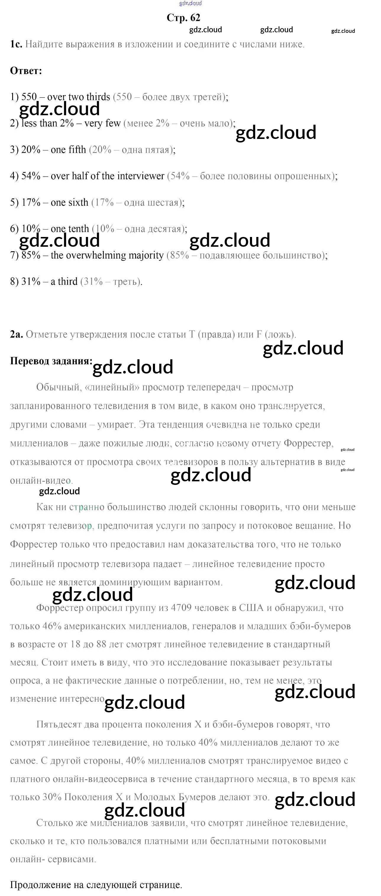 Ответ на задание стр.62 Рабочая тетрадь Английский язык за 10 (десятый) класс Юхнель, Наумова, Демченко 2020 Часть 1, 2