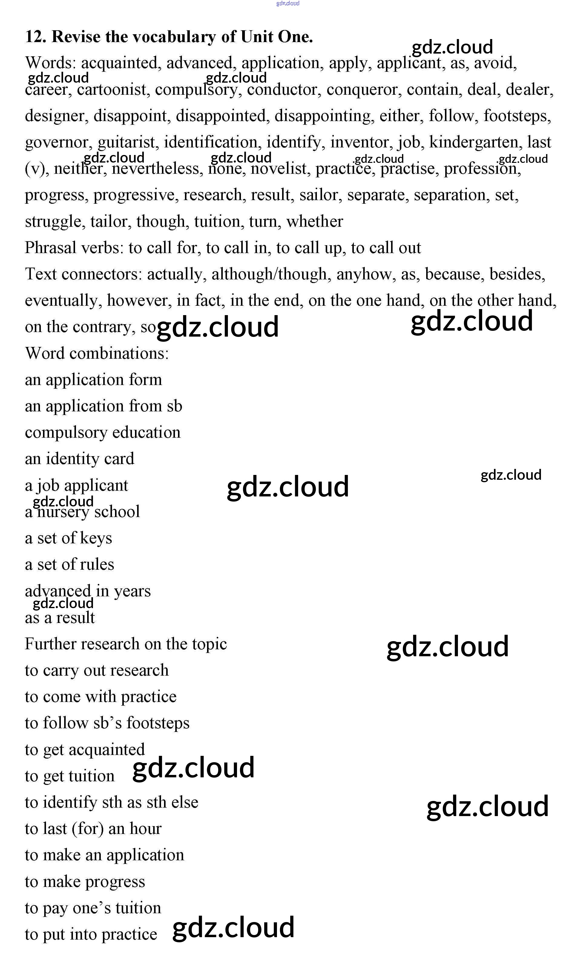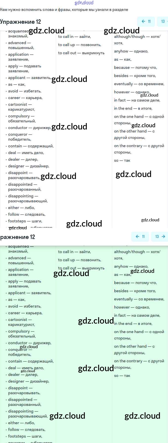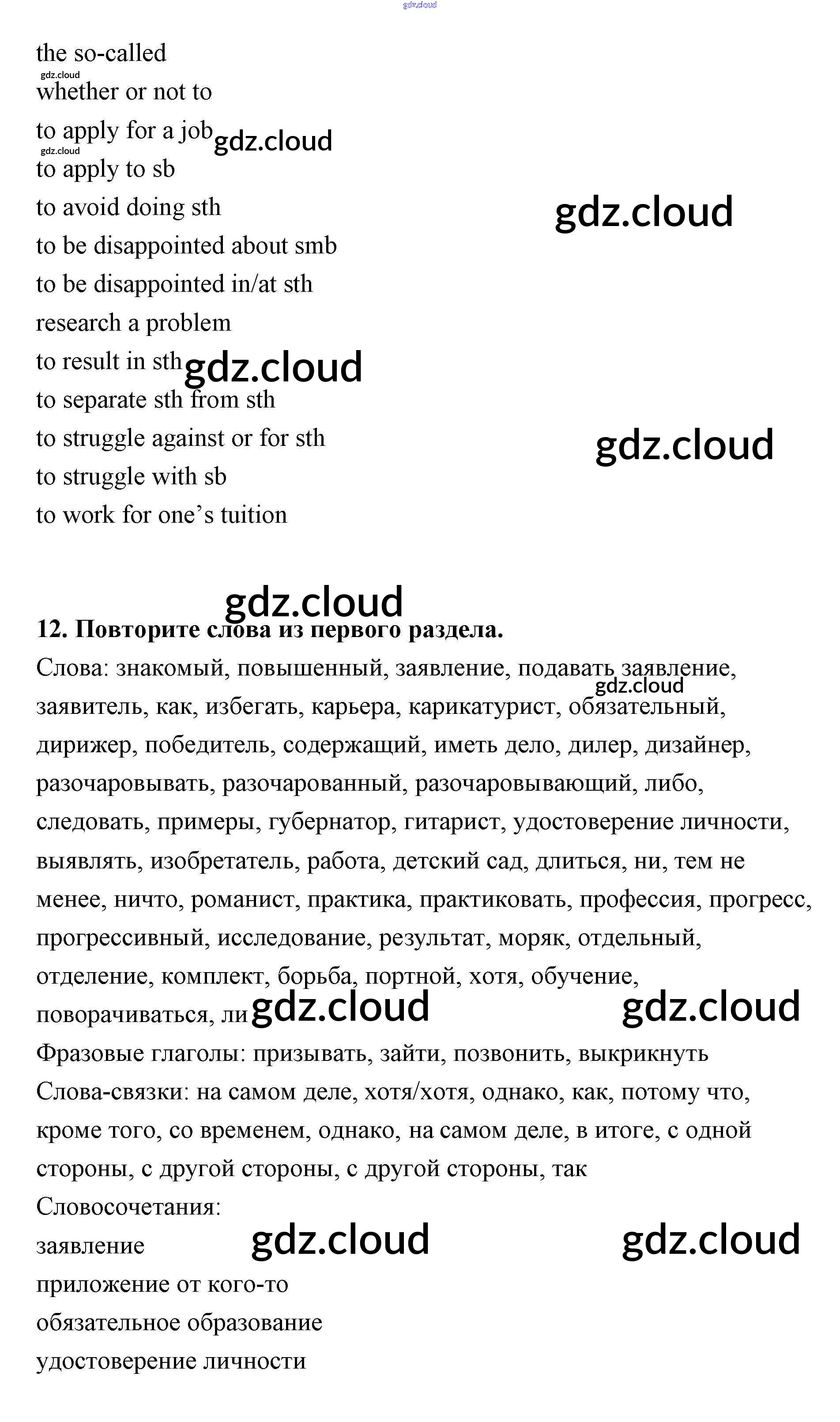 Ответ на задание 12 Рабочая тетрадь Английский язык за 11 (одиннадцатый) класс Афанасьева, Михеева, Баранова Rainbow Базовый уровень 2016